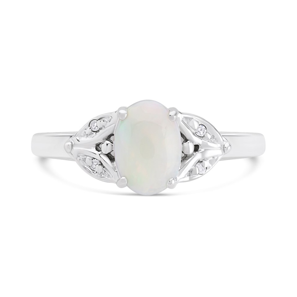 9ct White Gold Opal And Diamond Ring - Size K Only - Z5167