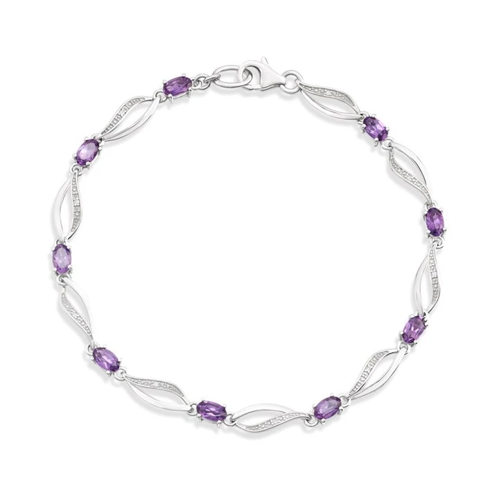 9ct White Gold Oval Amethyst And Diamond Bracelet - D95171