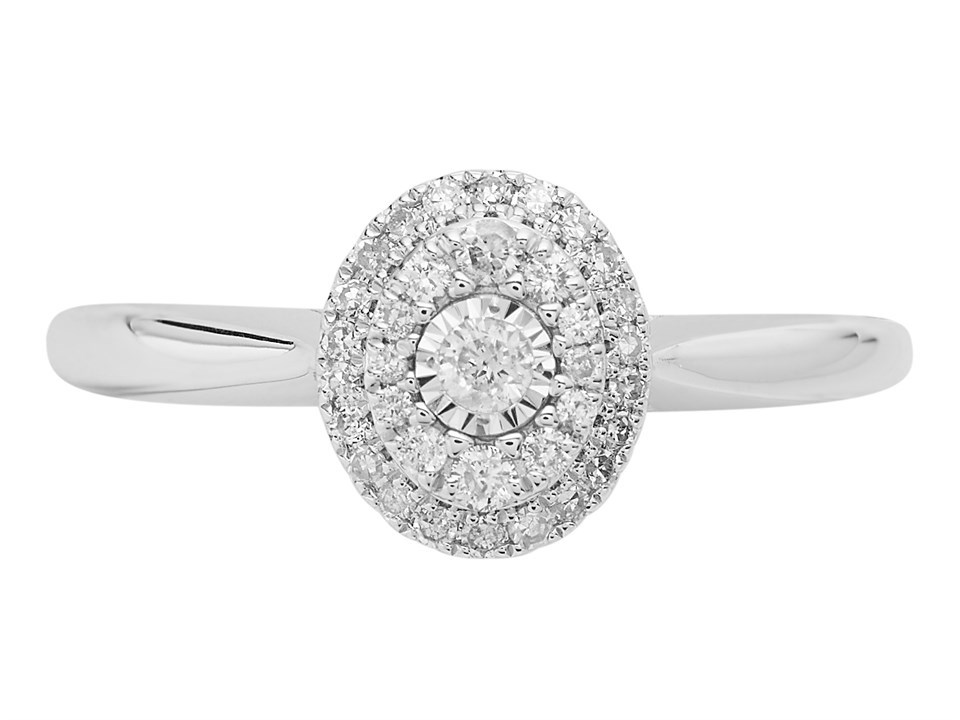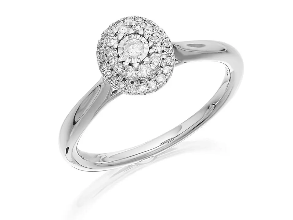 9ct White Gold Oval Diamond Cluster Ring - 20pts - D66126