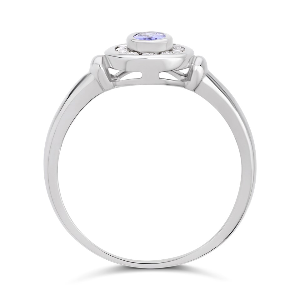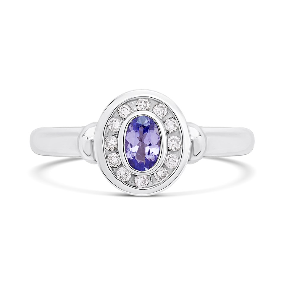 9ct White Gold Oval Tanzanite And Diamond Cluster Ring - Approx 20pts - Z51212