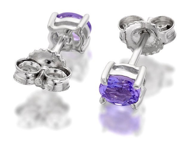 9ct White Gold Oval Tanzanite Stud Earrings - 4mm - G0810