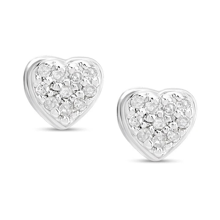 9ct White Gold Pave-Set Diamond Heart Stud Earrings - D5527