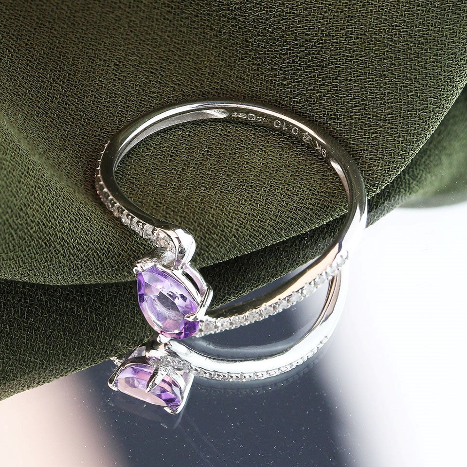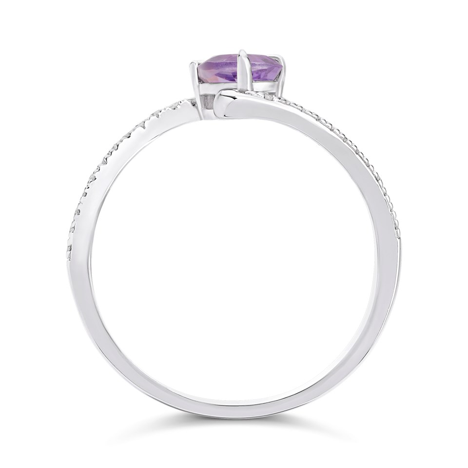 9ct White Gold Pear Amethyst And Diamond Twist Ring, 10pts - D63188