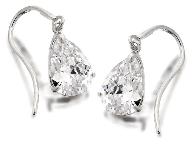 9ct White Gold Pear Drop Hook Wire Earrings - 18mm drop - G1023