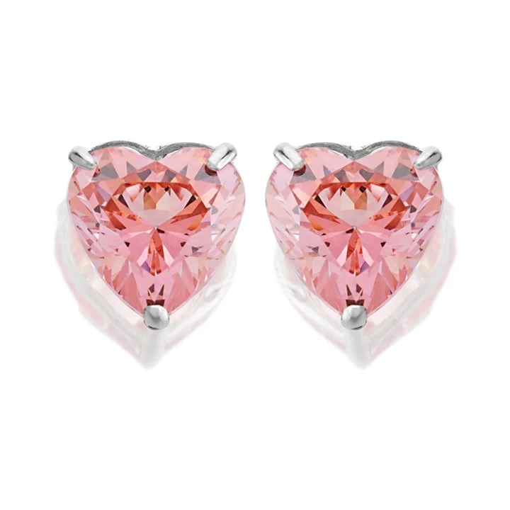 9ct White Gold Pink Cubic Zirconia Heart Stud Earrings - 6mm - G3134