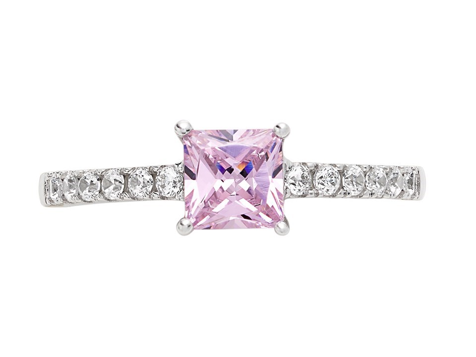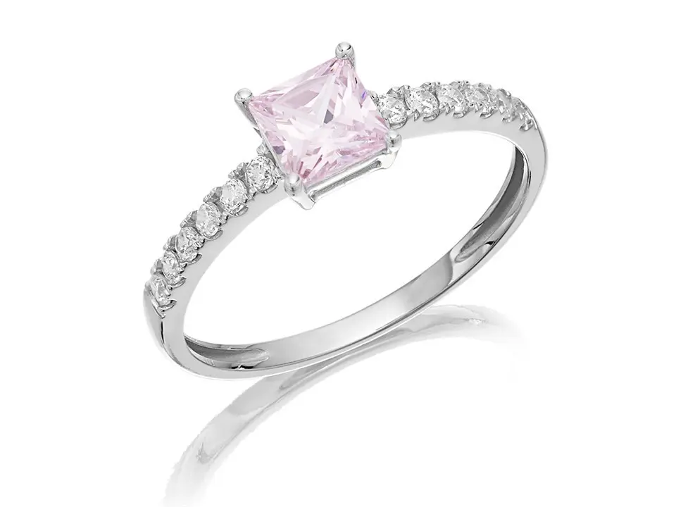 9ct White Gold Pink Princess Cut Cubic Zirconia Ring - R6556