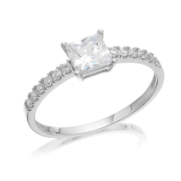 9ct White Gold Princess Cut Cubic Zirconia Ring - R5961-S