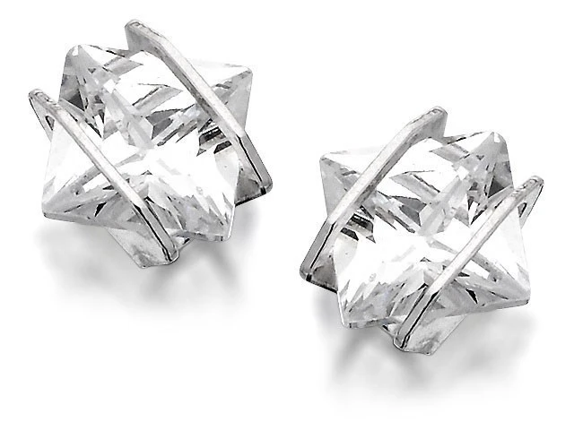 9ct White Gold Princess Cut Cubic Zirconia Stud Earrings - 4mm - G2708
