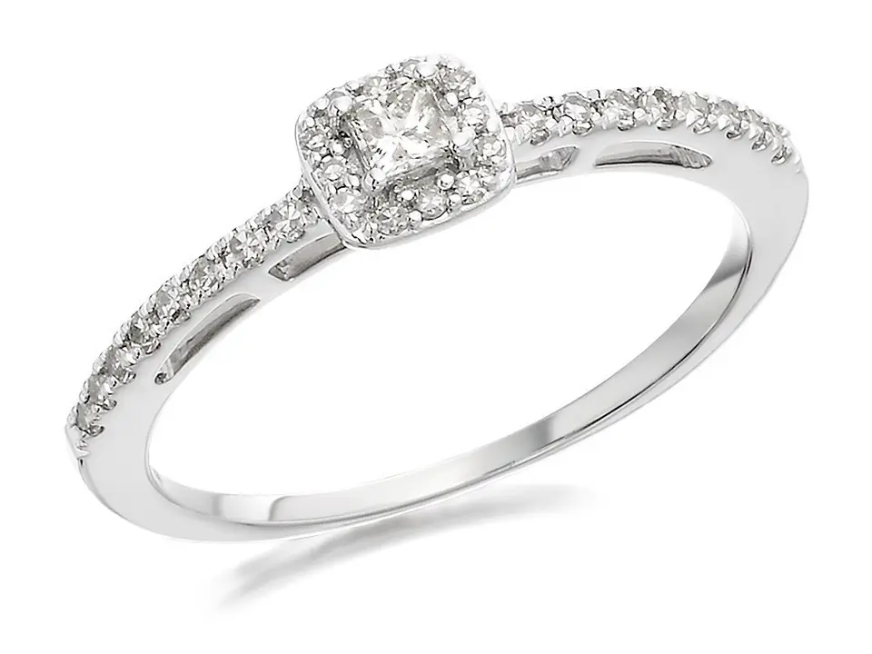 9ct White Gold Princess Cut Diamond Halo Cluster Ring - 1/4ct - D6891