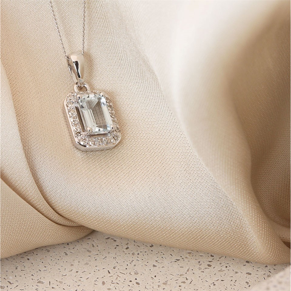 9ct White Gold Rectangular Aquamarine And Diamond Necklace - D97129