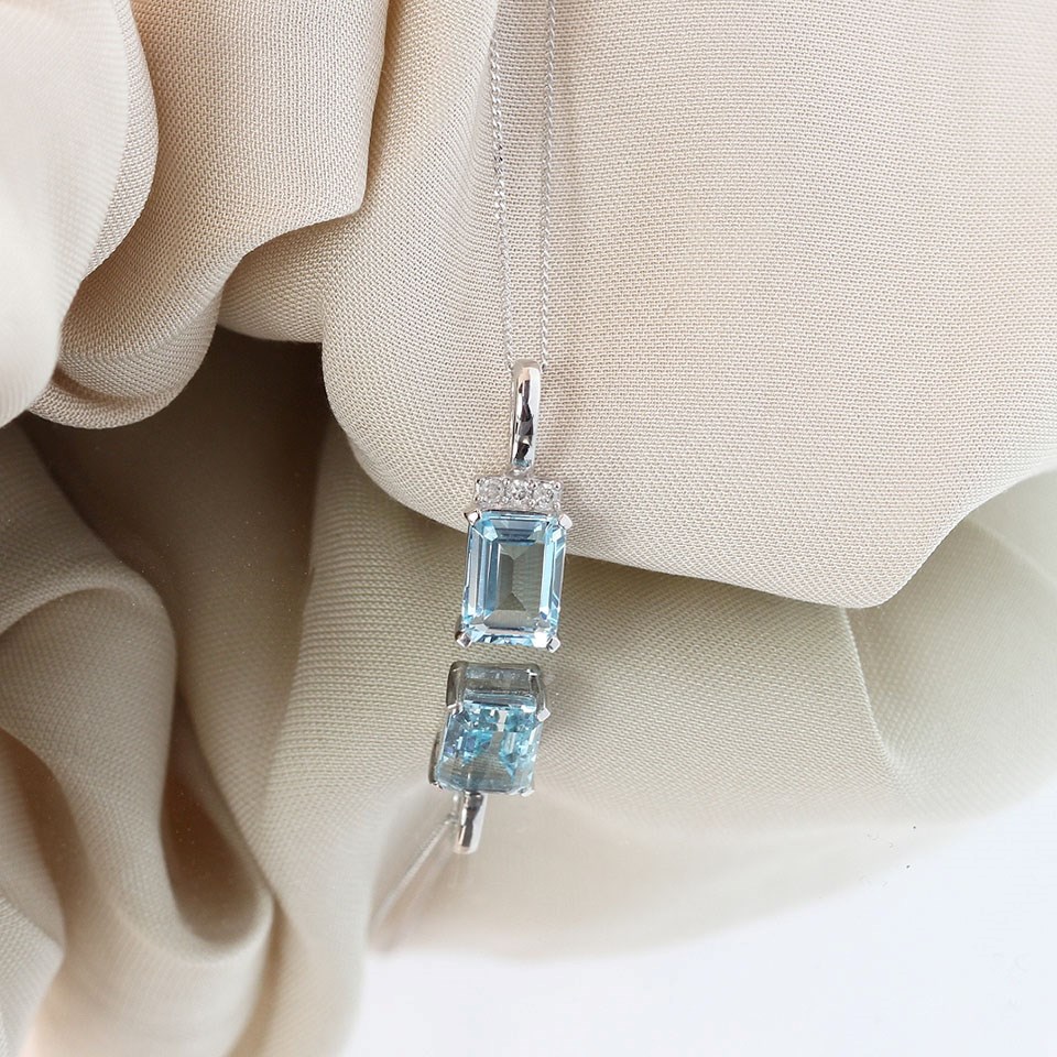 9ct White Gold Rectangular Blue Topaz And Diamond Necklace - D95159