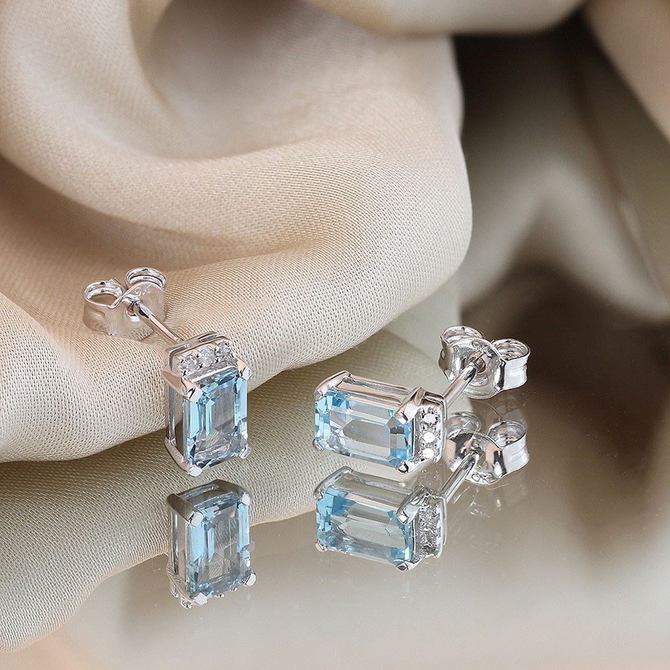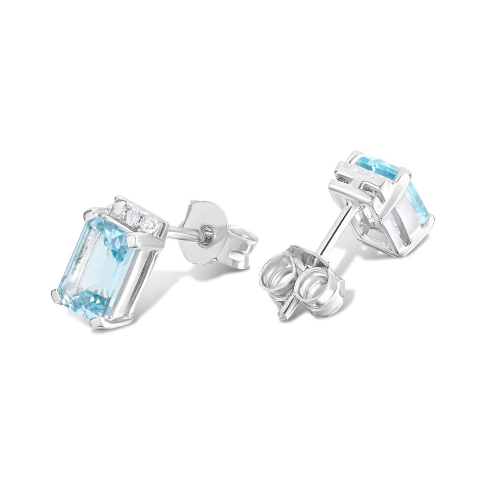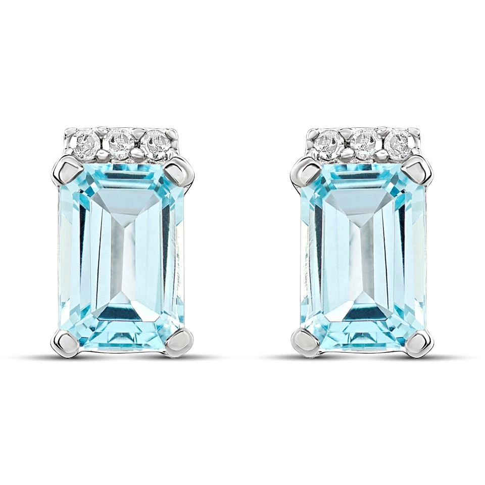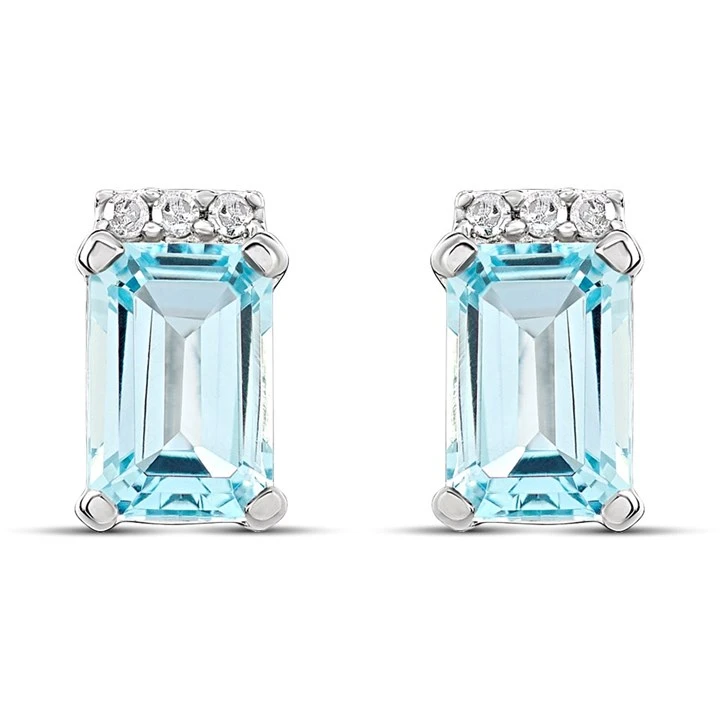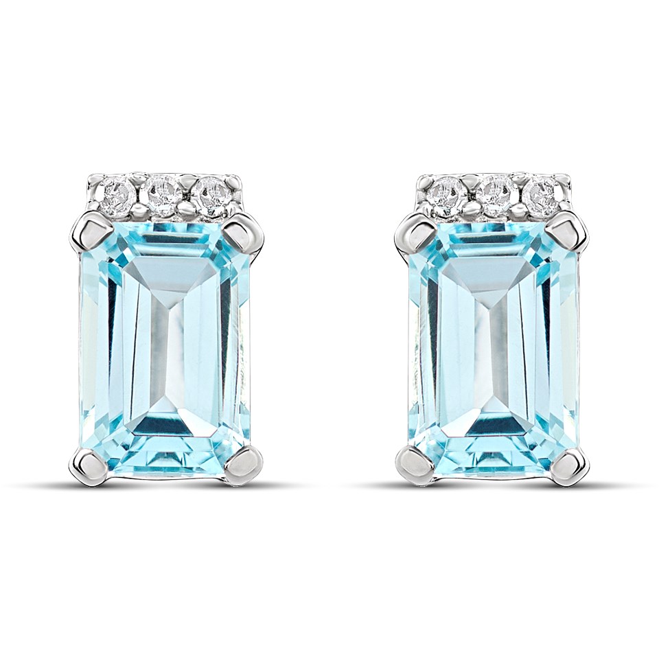 9ct White Gold Rectangular Blue Topaz And Diamond Stud Earrings - D94129