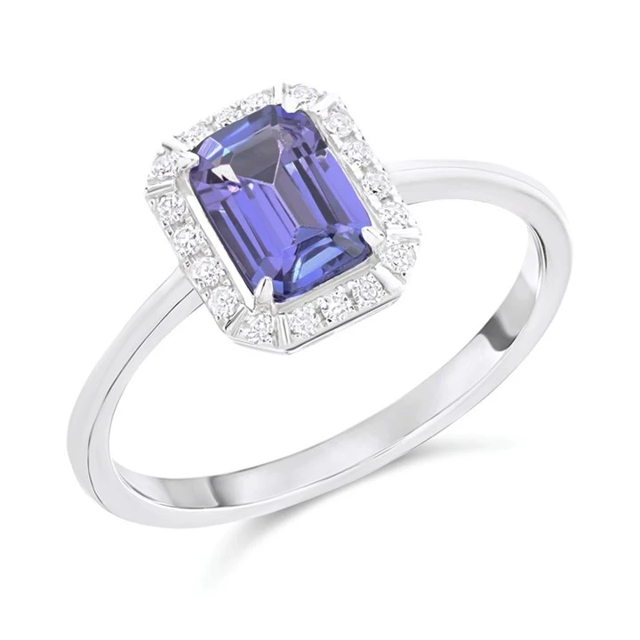 9ct White Gold Rectangular Tanzanite And Diamond Cluster Ring - D7953