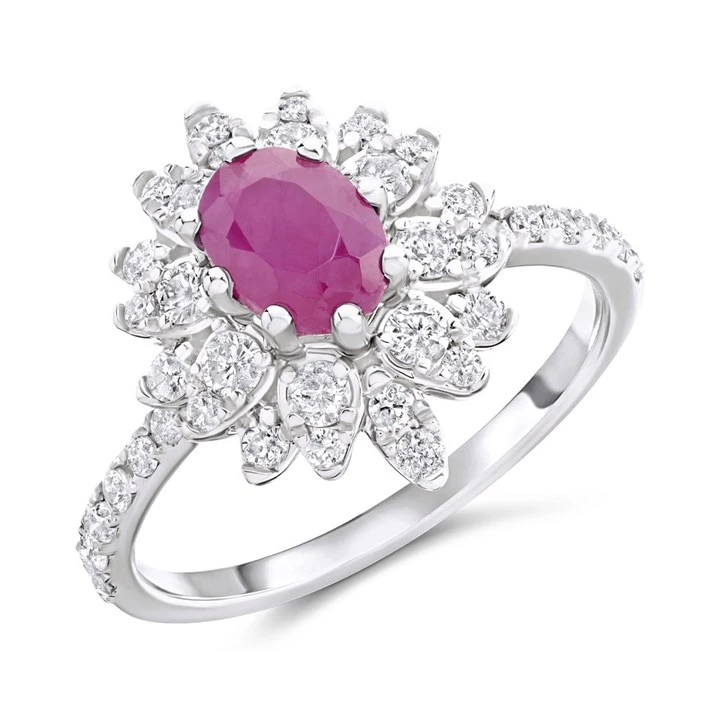 9ct White Gold Ruby And Diamond Cluster Ring - 3/4ct - D66158