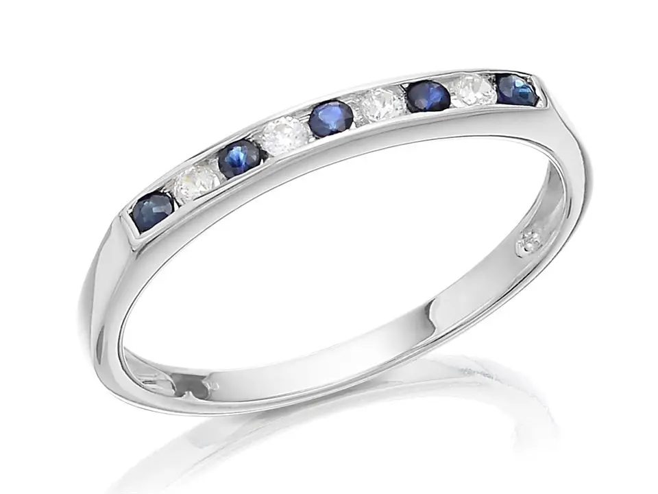 9ct White Gold Sapphire And Cubic Zirconia Half Eternity Ring - R0937