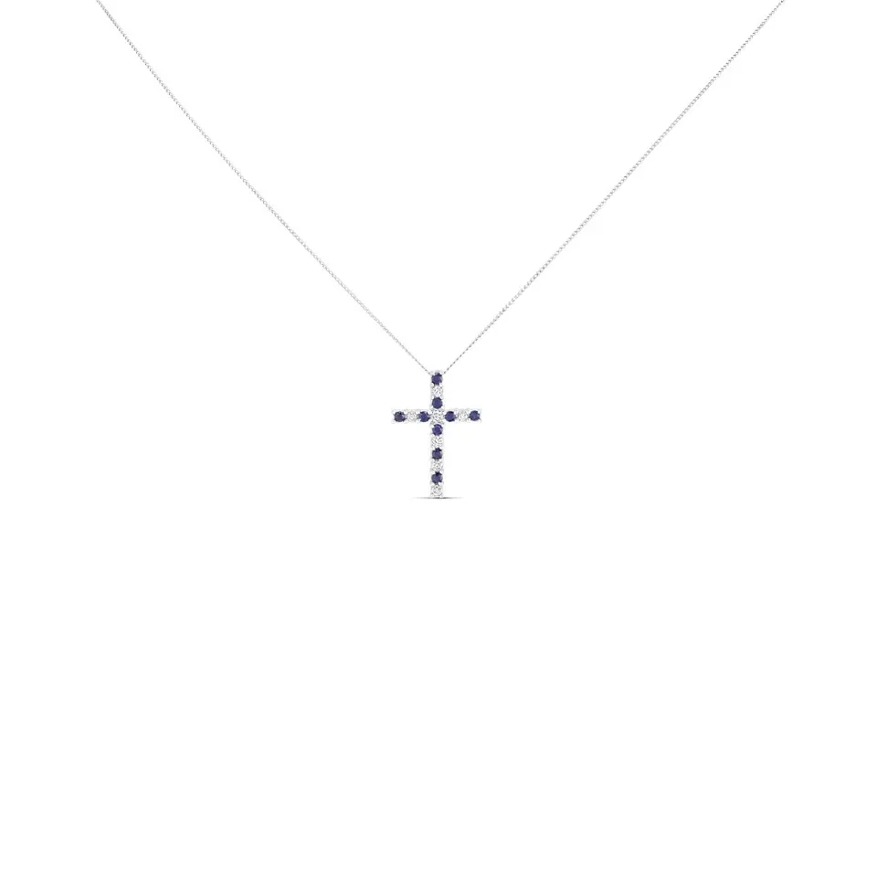 9ct White Gold Sapphire And Diamond Cross - 10pts - D97114