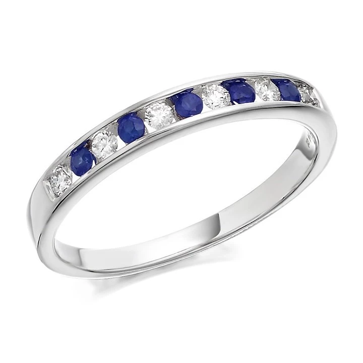 9ct White Gold Sapphire And Diamond Half Eternity Ring - 14pts - D6664-K