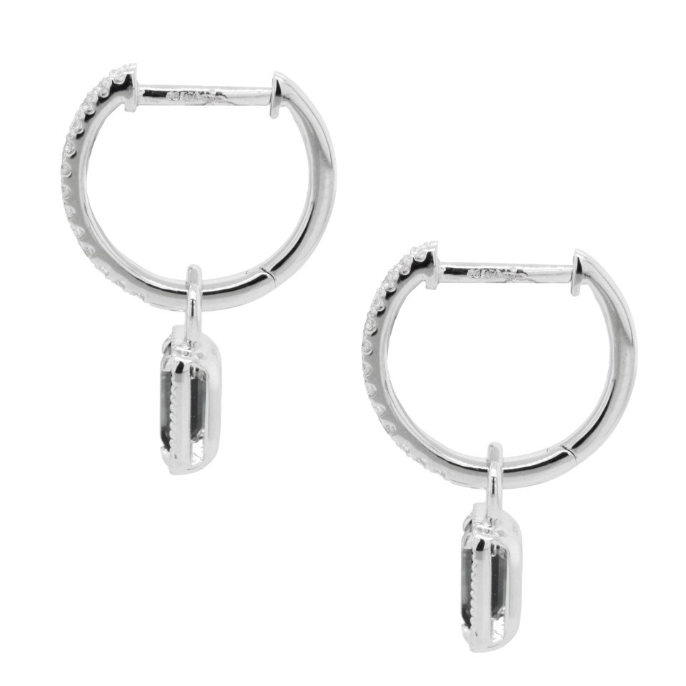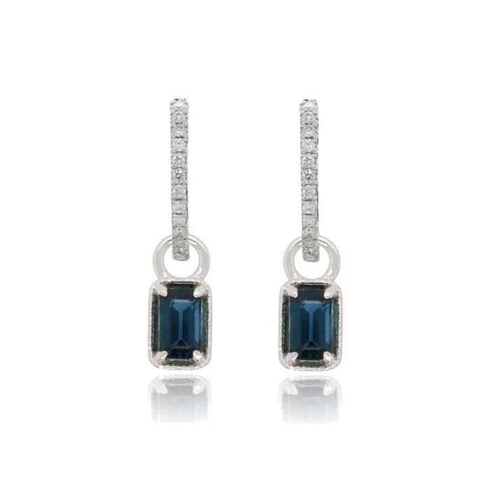 9ct White Gold Sapphire And Diamond Hoop Drop Earrings - 10pts per pair - D94109