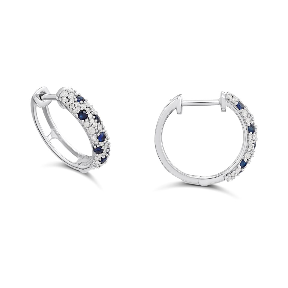 9ct White Gold Sapphire And Diamond Huggie Earrings, 1/4ct/pr - D94168