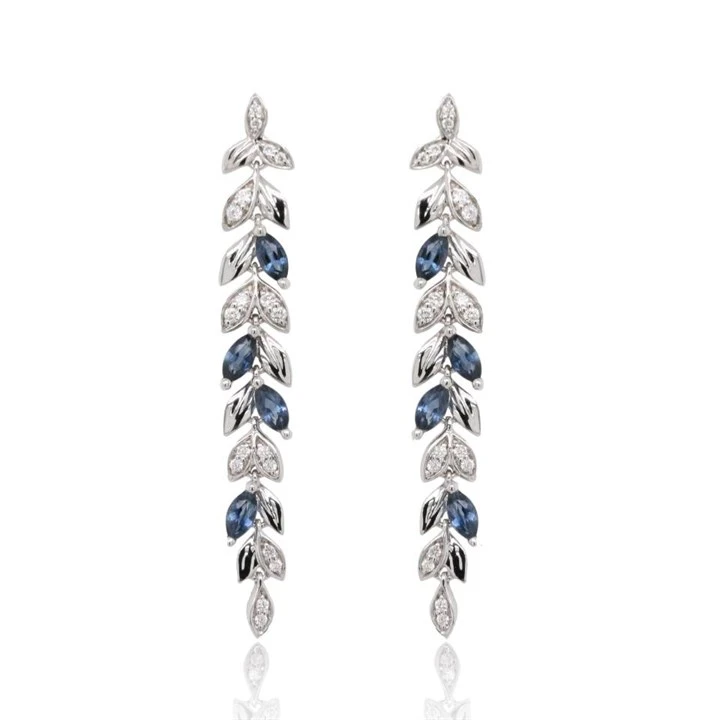 9ct White Gold Sapphire And Diamond Leaf Drop Earrings - 16pts per pair - D87030