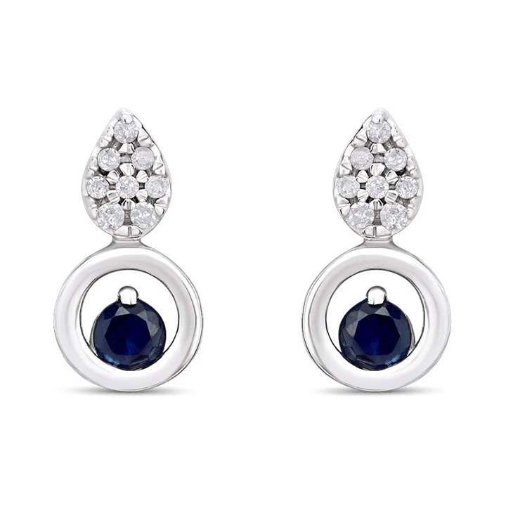9ct White Gold Sapphire And Diamond Stud Earrings - D94121