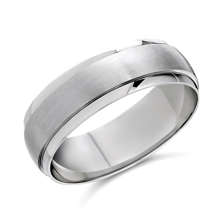 9ct White Gold Satin And Polished Wedding Ring - 7mm - Size R Only - Z10124