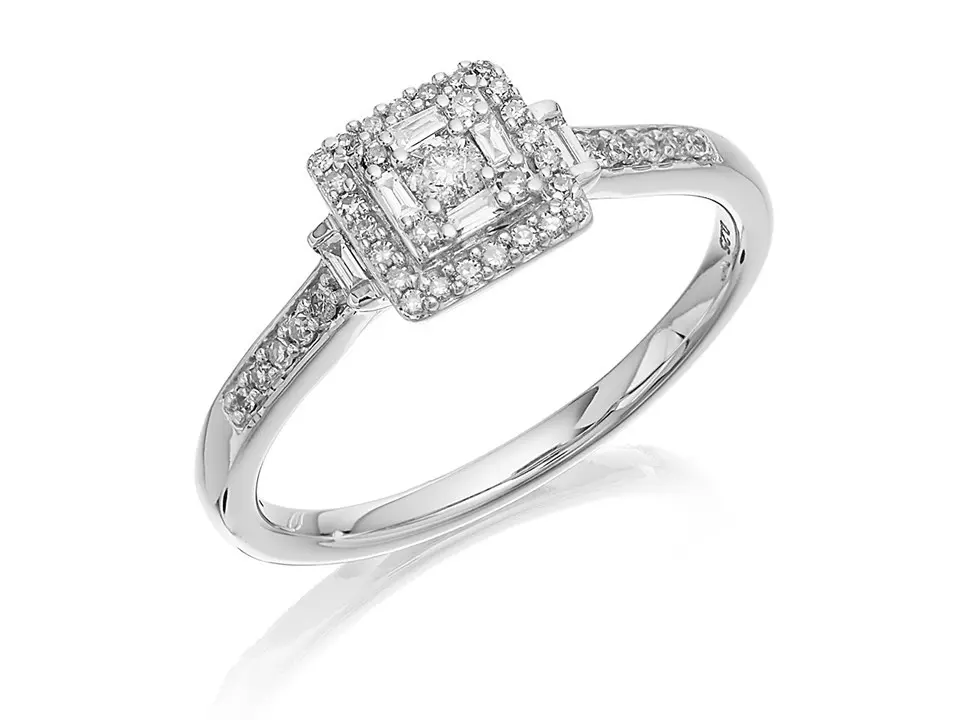 9ct White Gold Square Diamond Cluster Ring - 1/4ct - D66122