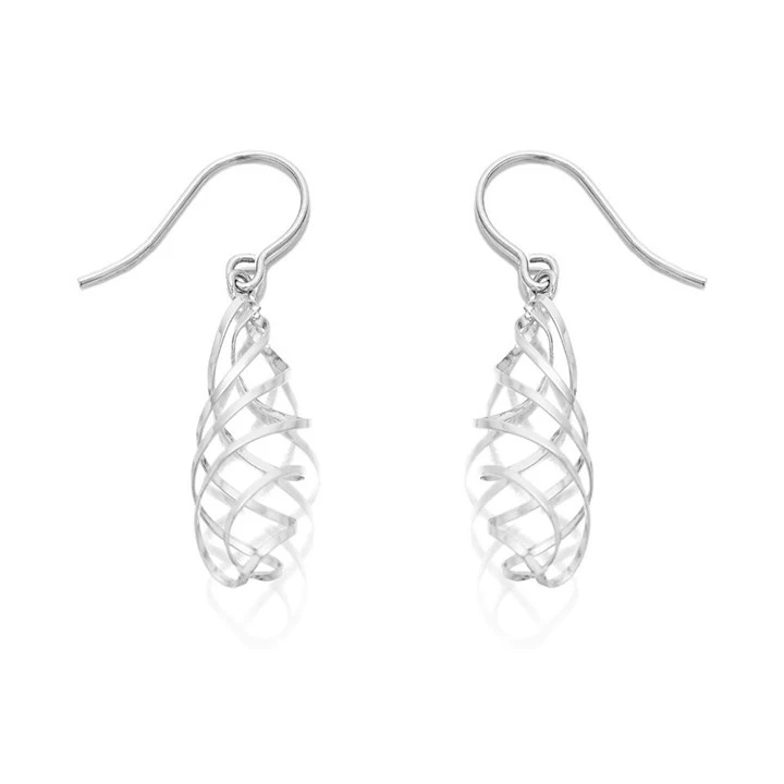 9ct White Gold Swirl Hook Wire Earrings - 38mm drop - G1424