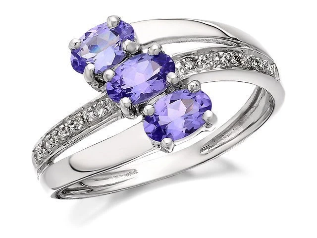 9ct White Gold Tanzanite And Diamond Crossover Ring - EXCLUSIVE - D6804
