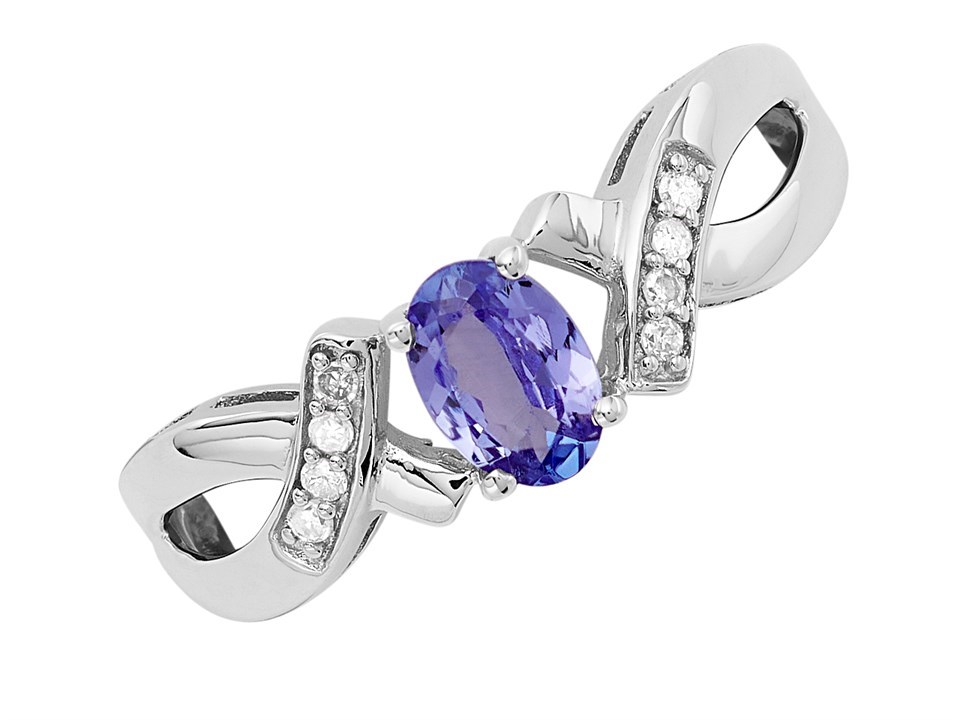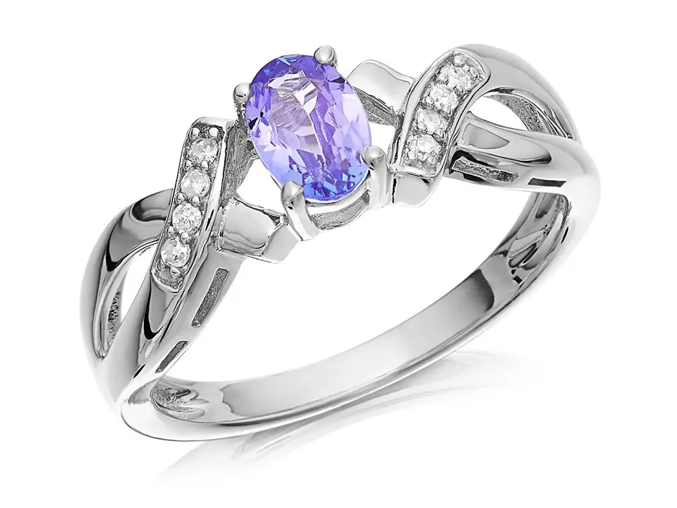 9ct White Gold Tanzanite And Diamond Kiss Ring - 4pts - D7936