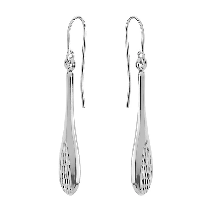 9ct White Gold Textured Hook Wire Earrings - 37mm drop - G1495