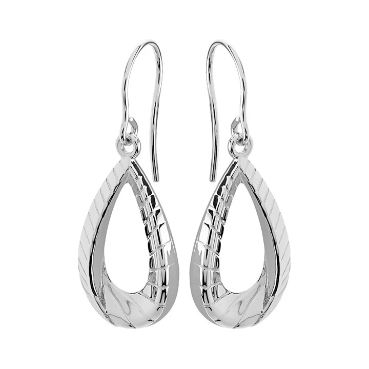 9ct White Gold Textured Teardrop Hook Wire Earrings - 31mm drop - G14101