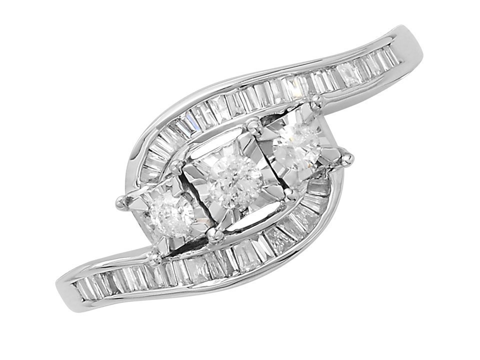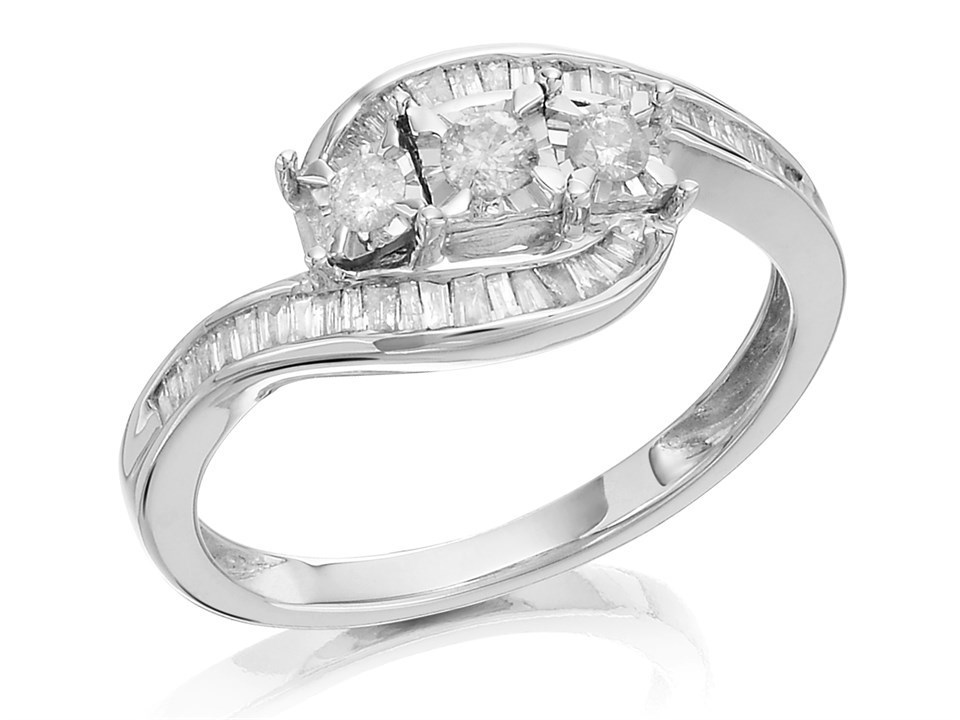 9ct White Gold Twist Diamond Trilogy Ring - 30pts - d72121