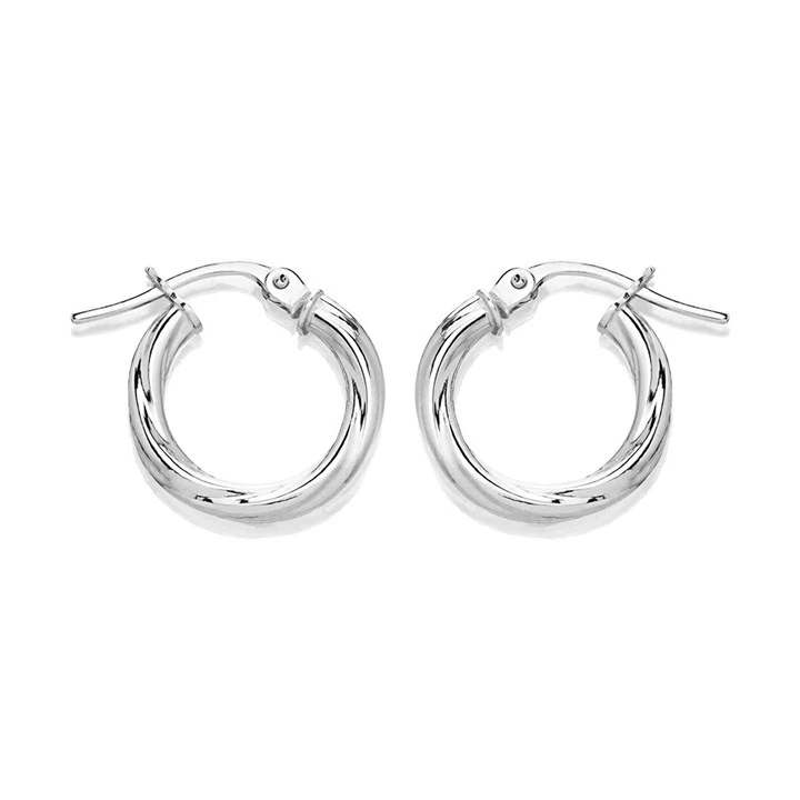 9ct White Gold Twist Hoop Earrings - 14mm - G41160