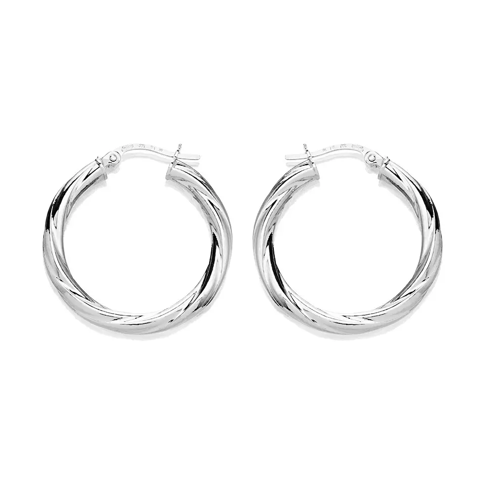 9ct White Gold Twist Hoop Earrings - 25mm - G41158