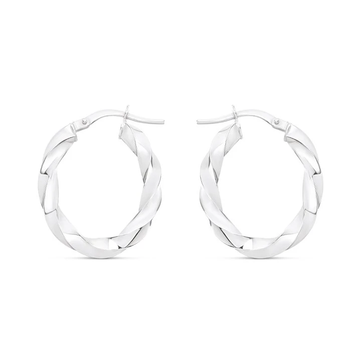 9ct White Gold Twisted Oval Hoop Earrings - 23mm - G41125