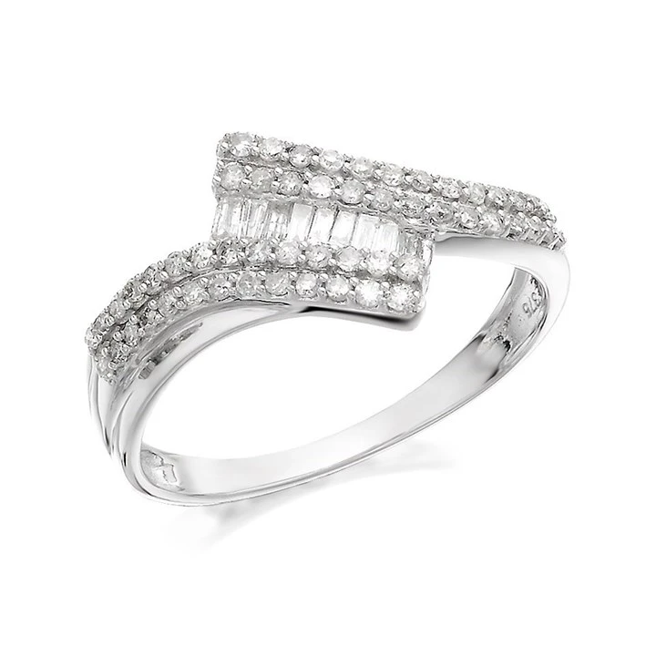 9ct White Gold Two Row Diamond Crossover Ring - 1/3ct - D71118
