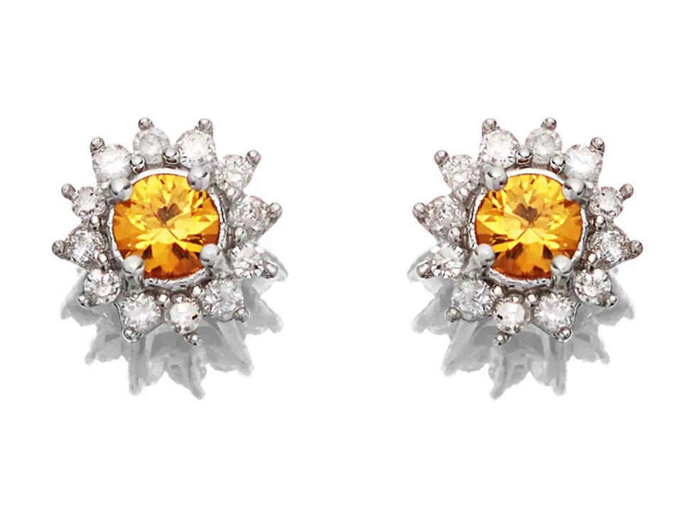 9ct White Gold Yellow Sapphire And Diamond Stud Earrings - 10pts per pair - D54104