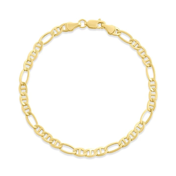 This gold figarucci bracelet is 4mm wide and 7.5" long.