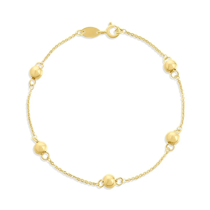This gold bead bracelet is 5mm wide and 7.5" long.