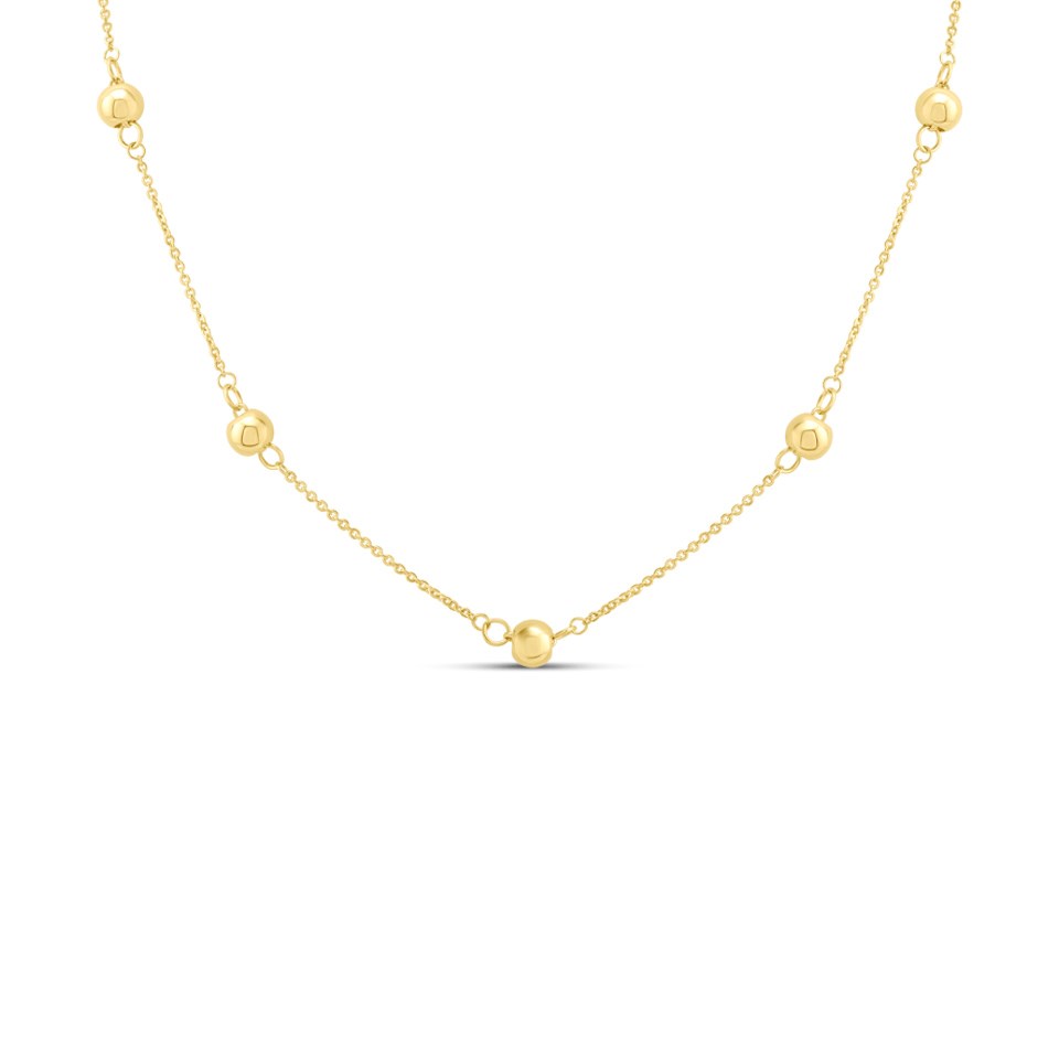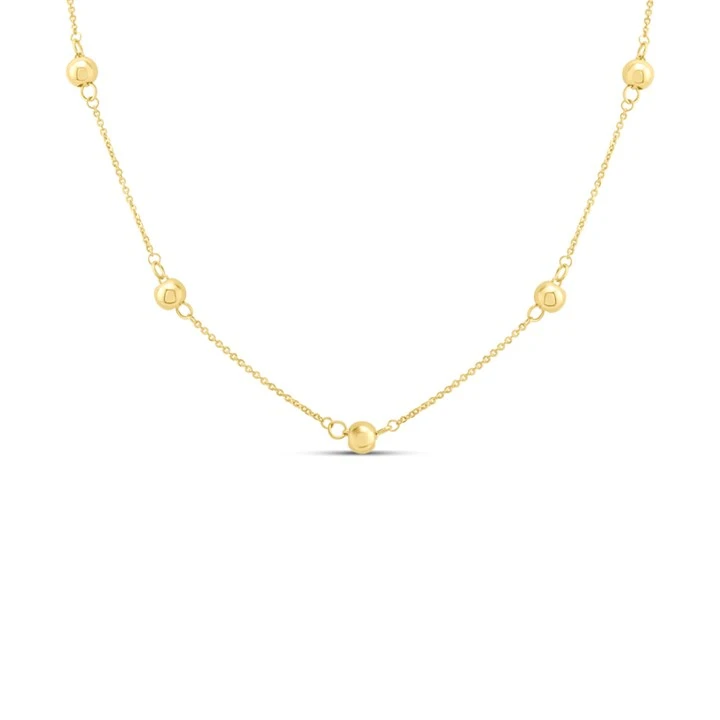 This bead necklet features 5mm beads spaced along a fine trace chain, measures 17.5in long and is fitted with a secure karab clasp.