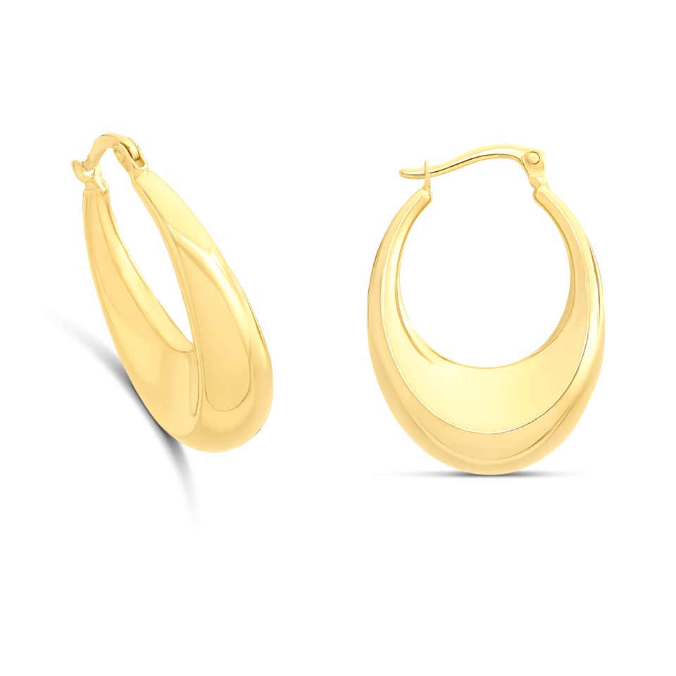 These classic plain oval creole style hoop earrings have a hinged fitting and measure 28mm.