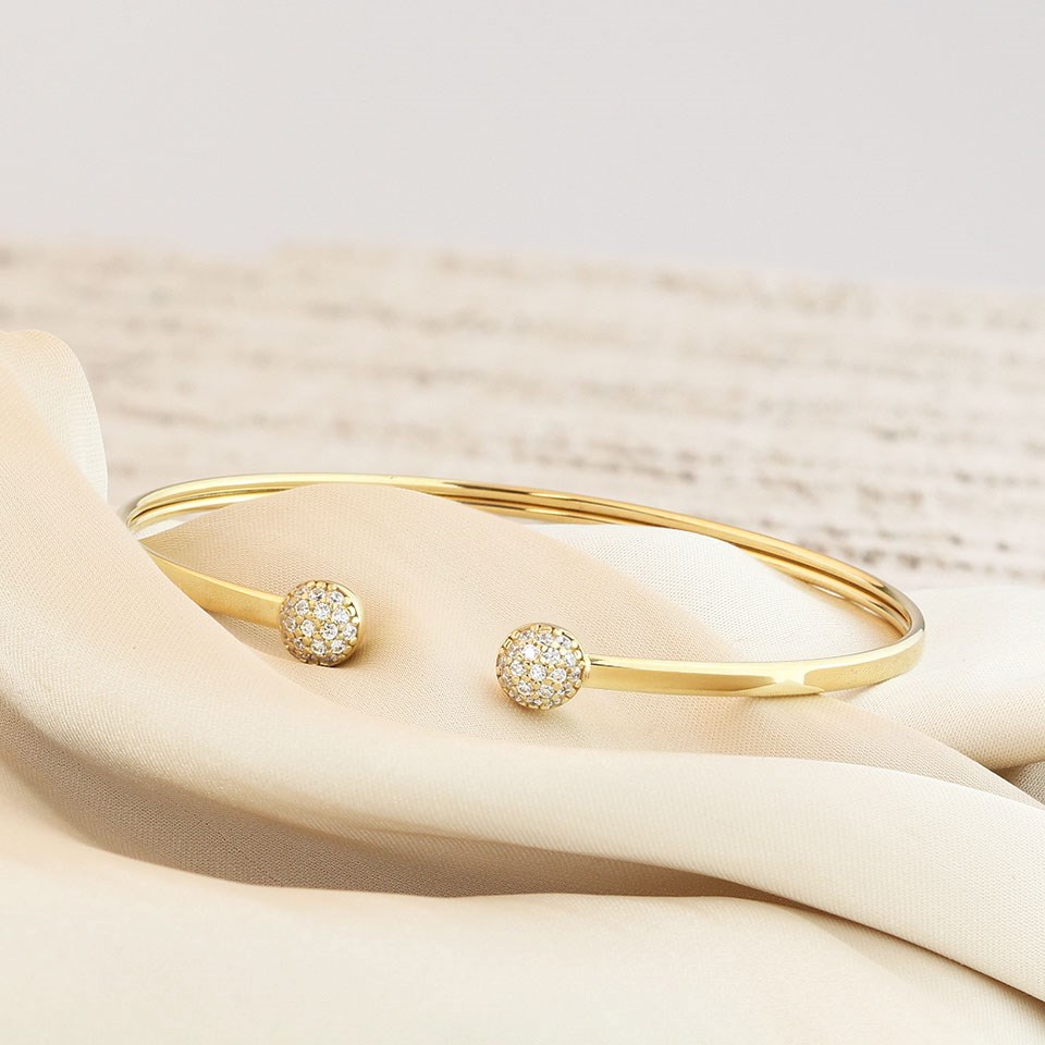 This beautiful 2.5mm wide torc bangle featuring pavé set cubic zirconias to add a touch of sparkle. Measured 61mm across.