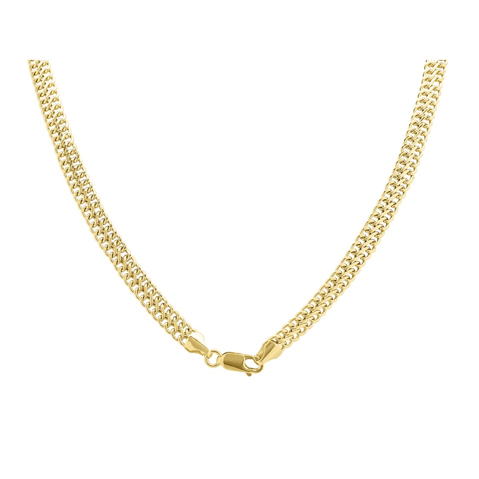 This fancy chain necklace features 5mm wide links, measures 18in long and is fitted with a secure karab clasp.