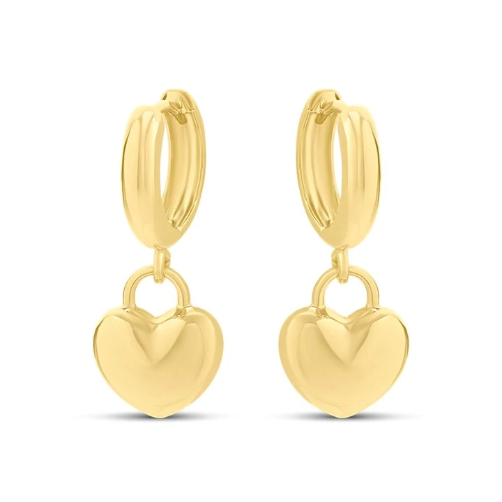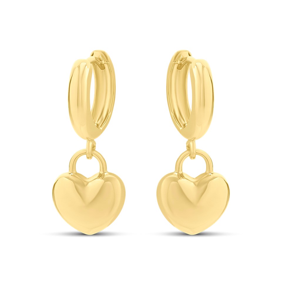 These huggie style, heart drop earrings have a total drop of approximately 25mm.