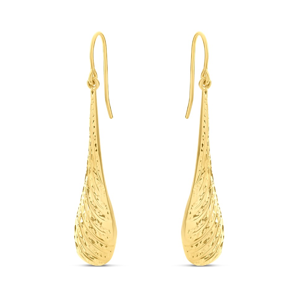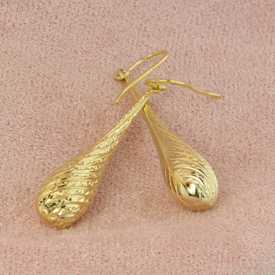 These fabulous bomb design drop earrings have a textured front to catch the light and are finished with a hook wire fitting.