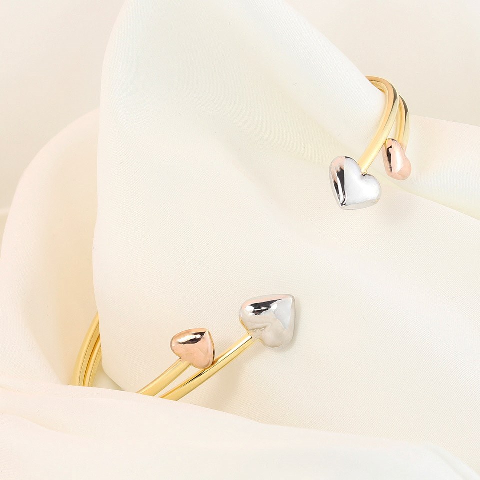AUREUS Sterling Silver & 9ct Bonded Gold Three Colour Heart Bangle - M3531