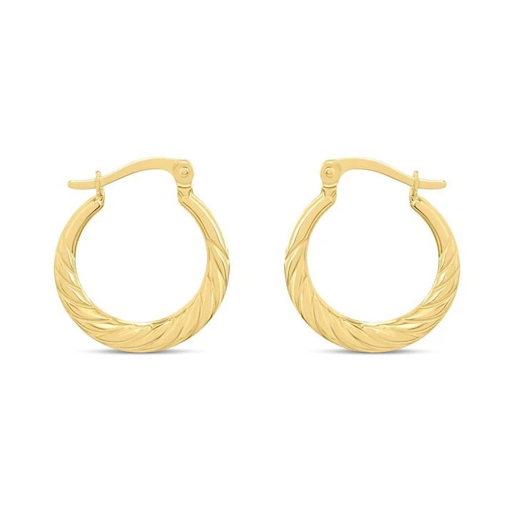 With a stylish twist pattern, these 17mm wide creole earrings have a hinge and snap fastening.