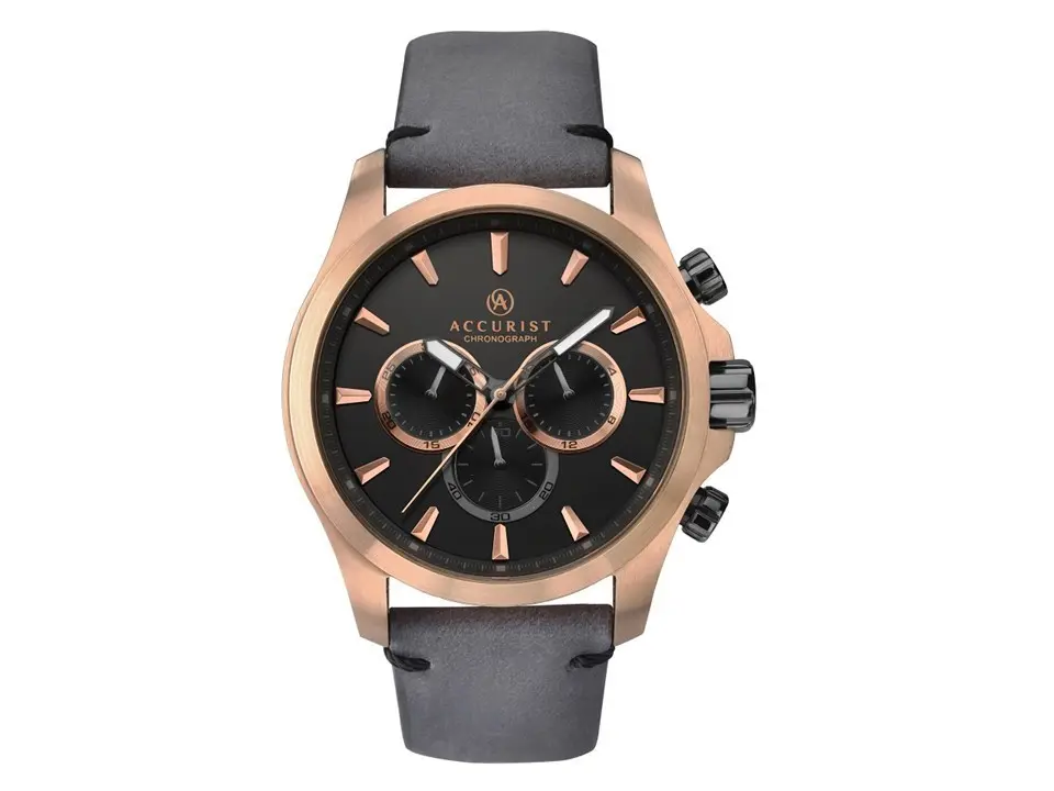 Accurist 7179 Rose Gold Plated Chronograph Leather Strap Watch - W1970