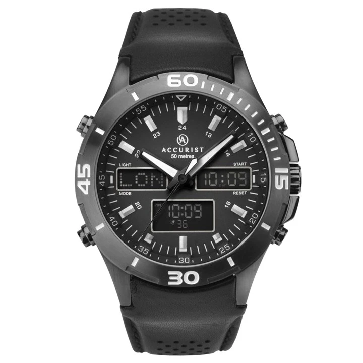 Accurist 7192 Black IP Leather Strap Watch - W19187